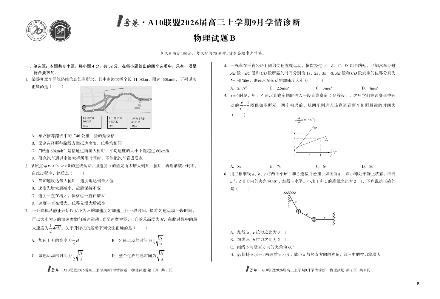 1号卷·A10联盟2026届高三上学期9月学情诊断 物理(B卷).pdf
