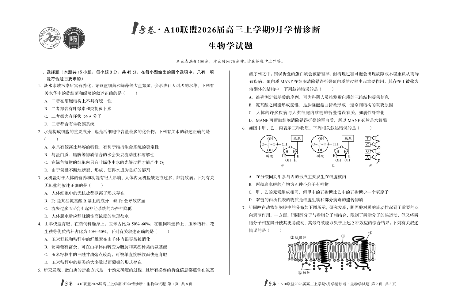 1号卷·A10联盟2026届高三上学期9月学情诊断 生物学.pdf