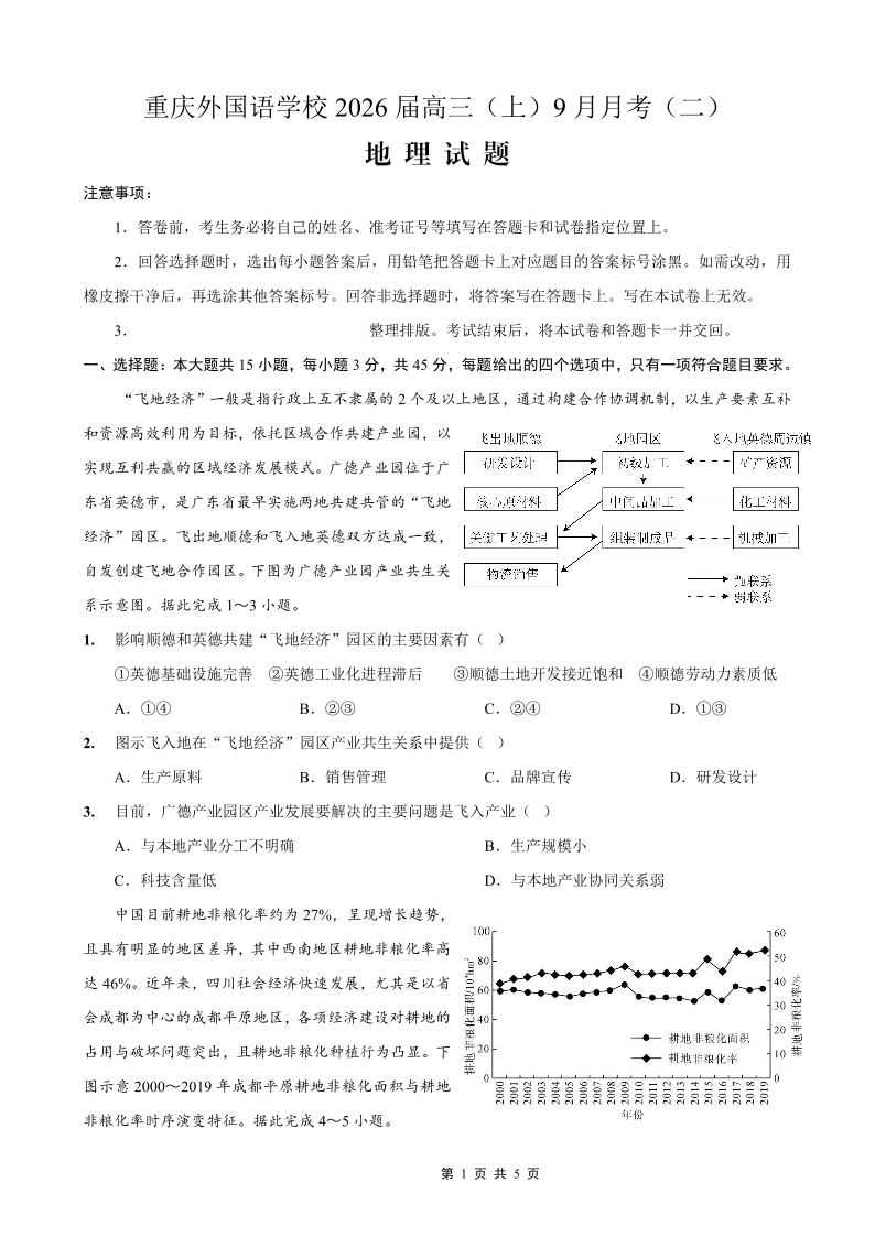 重庆实验外国语学校2025-2026学年度(上)高2026届9月月考(二)地理.pdf