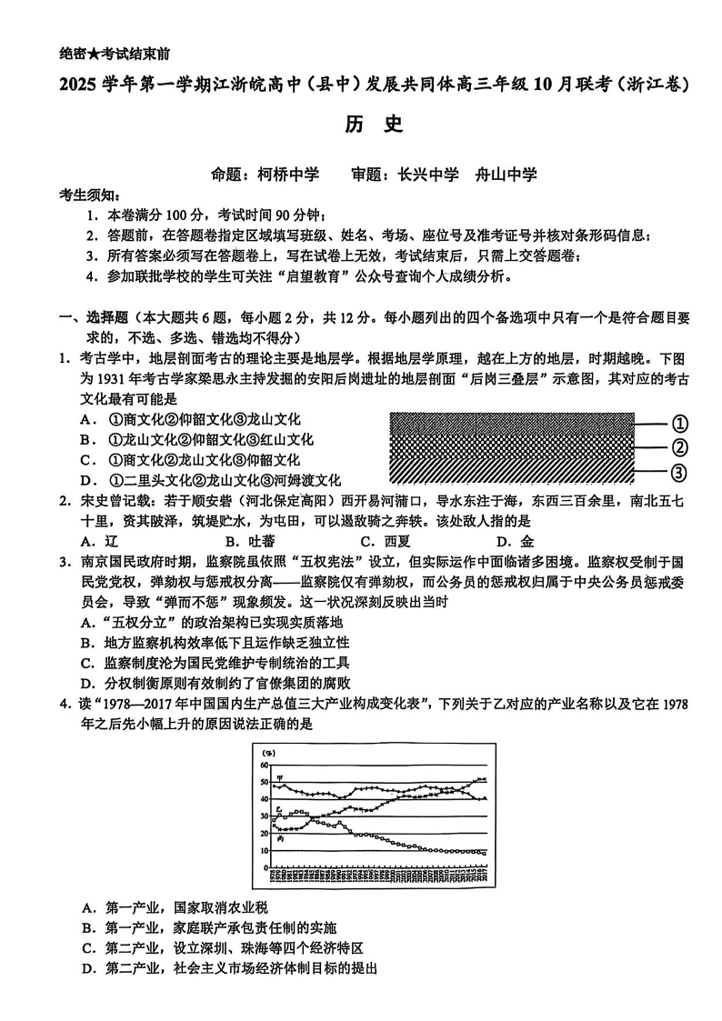 江浙皖高中(县中)发展共同体2025-2026学年高三上学期10月联考历史试题(含答案).pdf