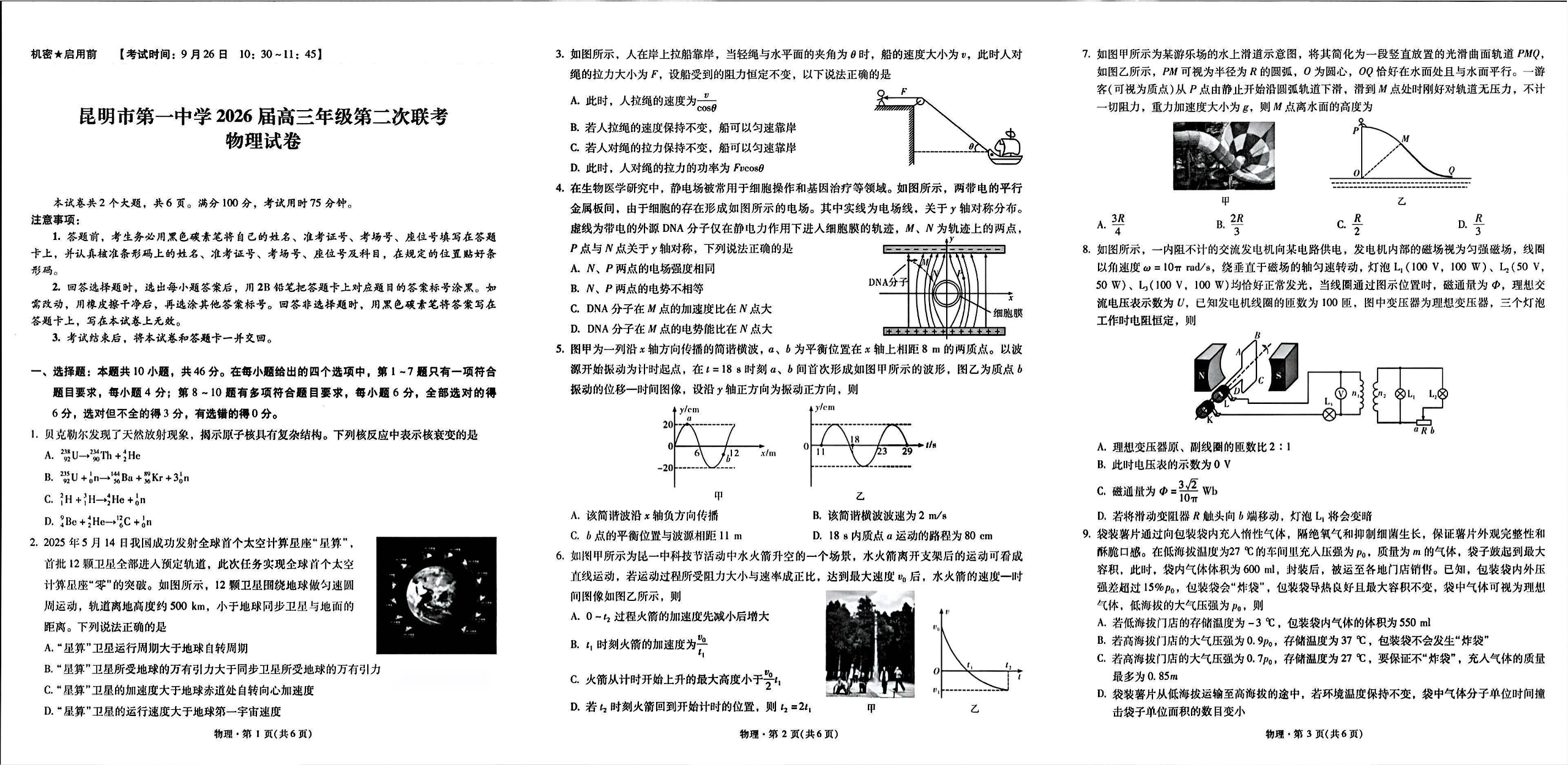 云南省昆明市第一中学2026届高三年级第二次联考物理.pdf