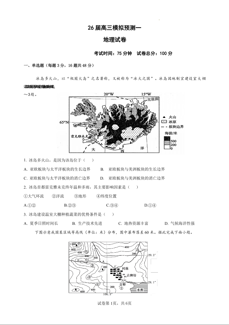 26届高三模拟预测一地理+答案.docx