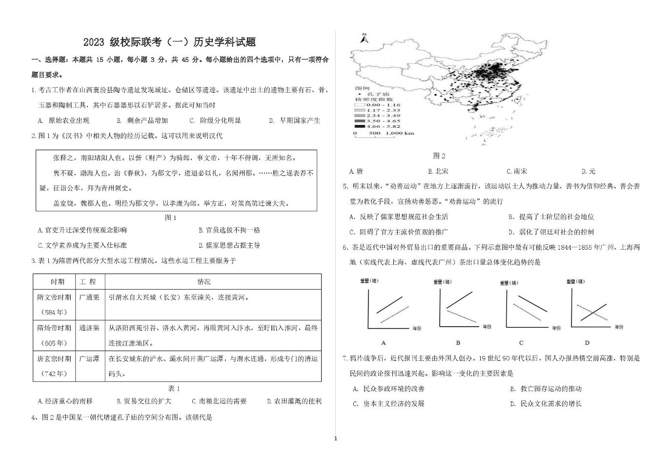 山东省德州市2026届高三上学期9月校际联考(一)历史试卷(含答案).pdf