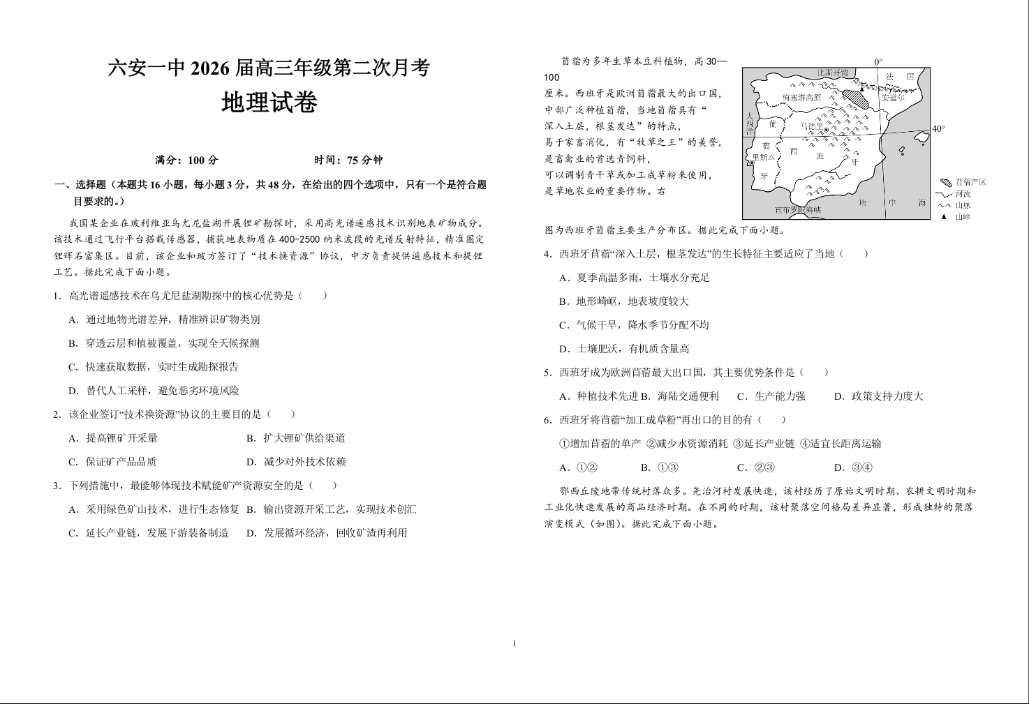 安徽省六安第一中学2025-2026学年高三上学期10月月考地理试题.docx