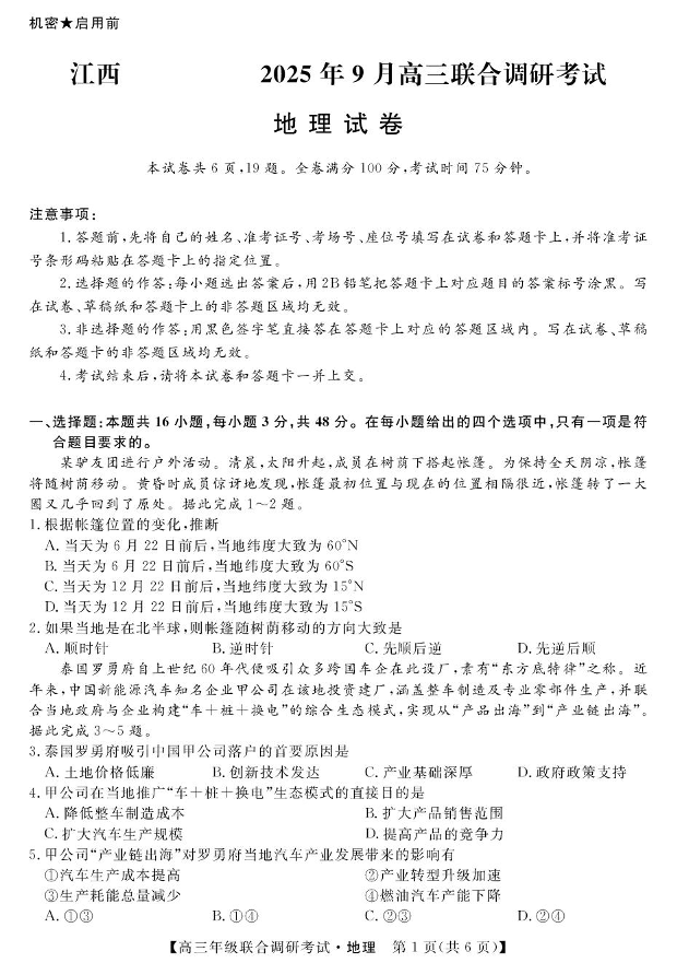 江西省创智协作体2026届高三上学期9月联合调研考试地理.pdf