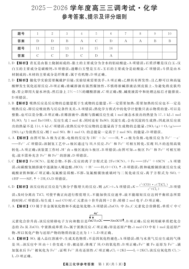 河北省衡水市2025-2026学年高三上学期第三次调研考试(26008C)化学答案.pdf