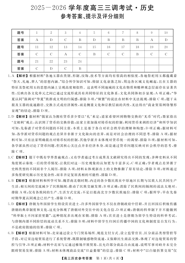 河北省衡水市2025-2026学年高三上学期第三次调研考试(26008C)历史答案.pdf