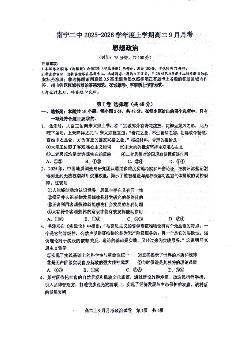 南宁二中2025-09月考高二政治.pdf