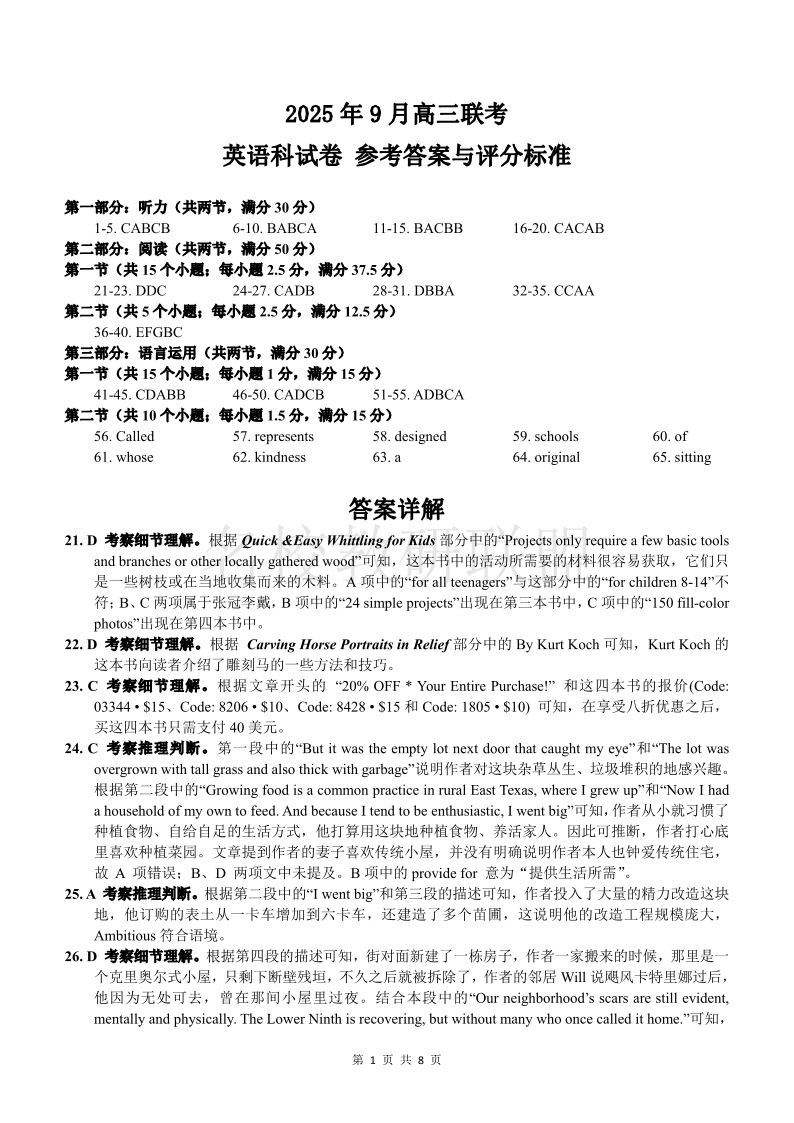 考阅评·广西示高2025年9月高三联考 英语答案.pdf