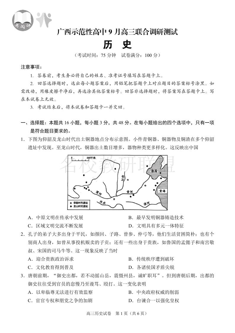 考阅评·广西示高2025年9月高三联考 历史.pdf
