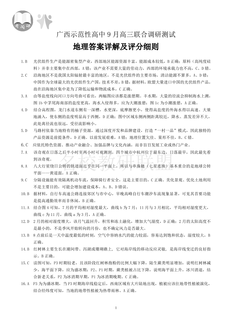 考阅评·广西示高2025年9月高三联考 地理答案.pdf