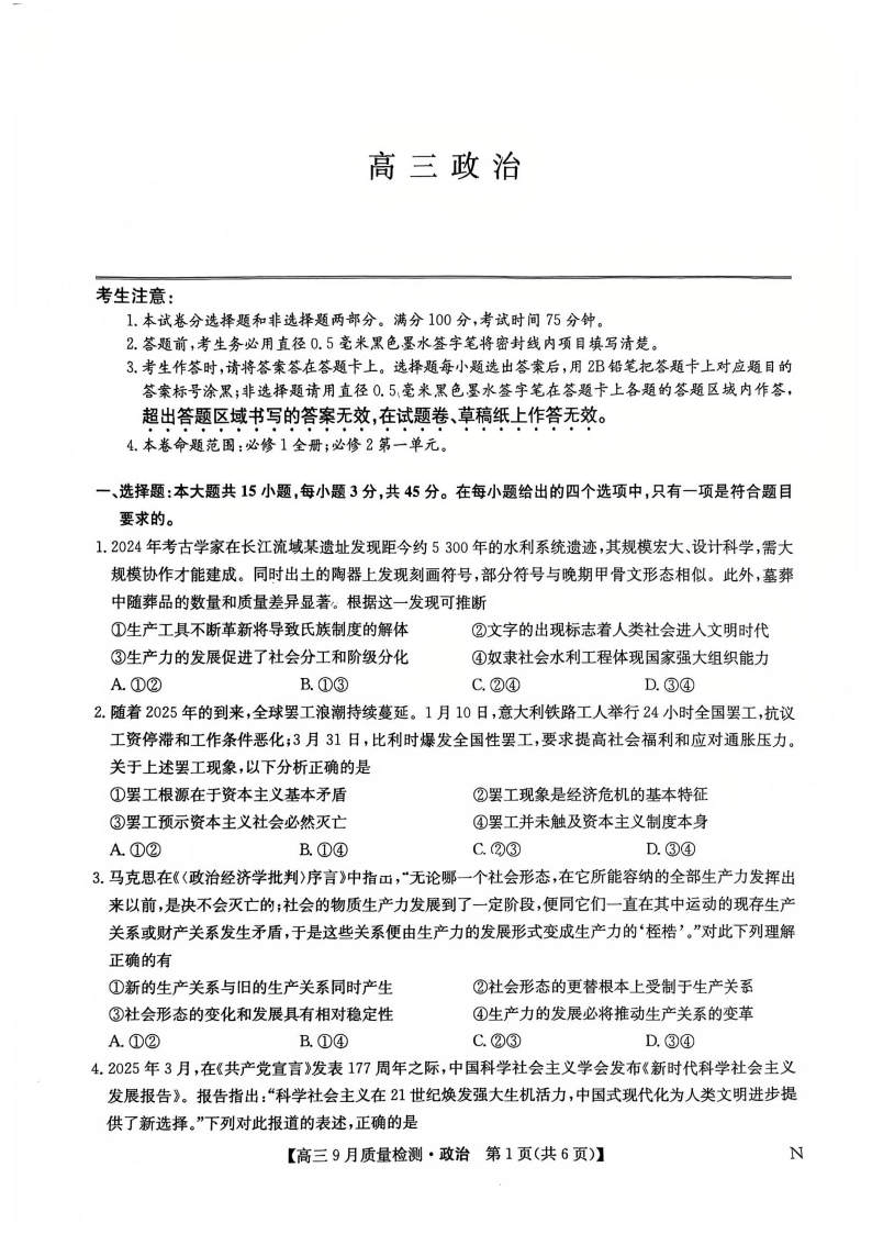 九师联盟2026届高三9月质量检测 政治.pdf