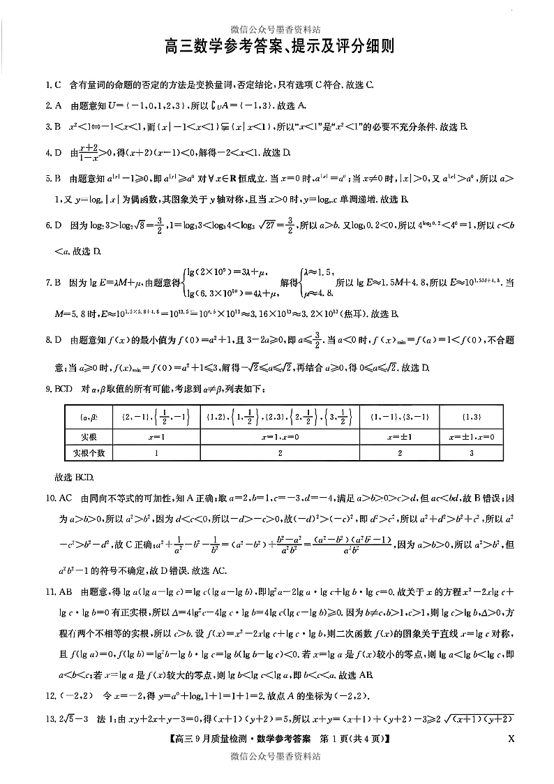 九师联盟2026届高三9月质量检测 数学答案.pdf