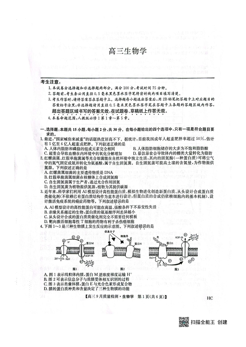 九师联盟2026届高三9月质量检测 生物.pdf