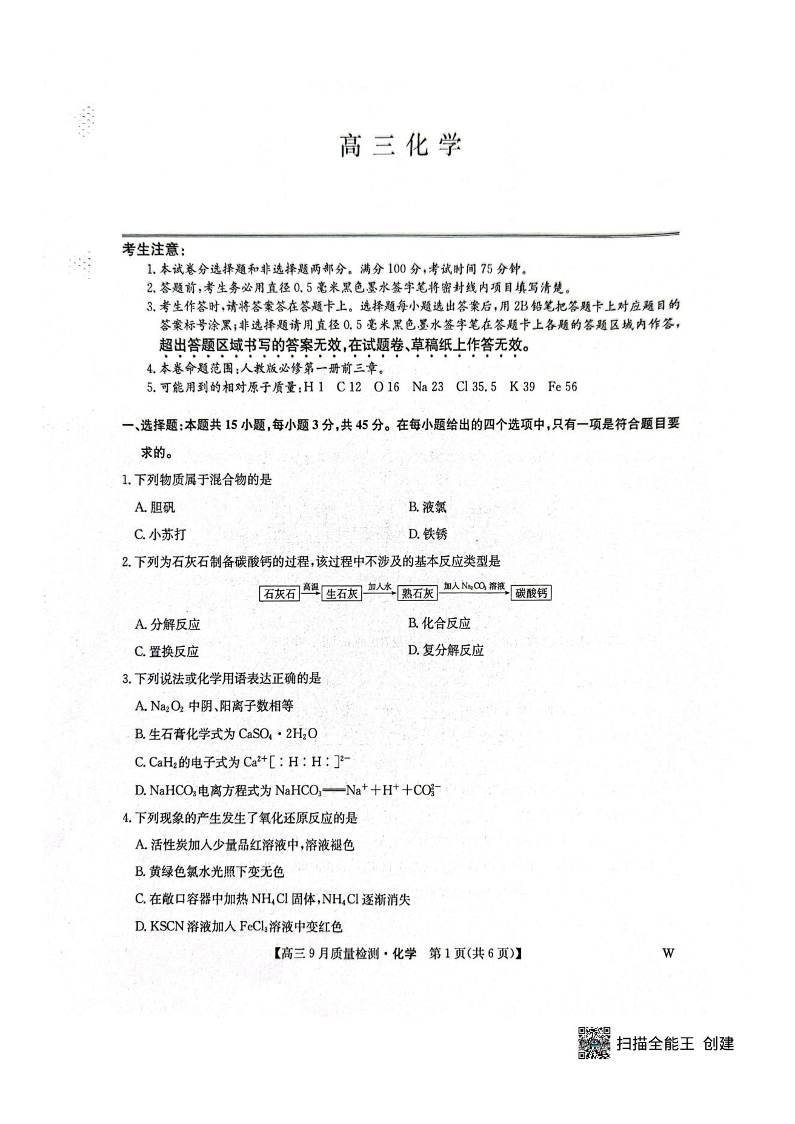 九师联盟2026届高三9月质量检测 化学.pdf