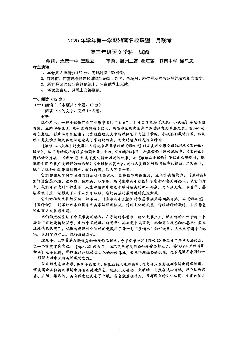 26届浙南名校联盟国庆返校考 语文.pdf