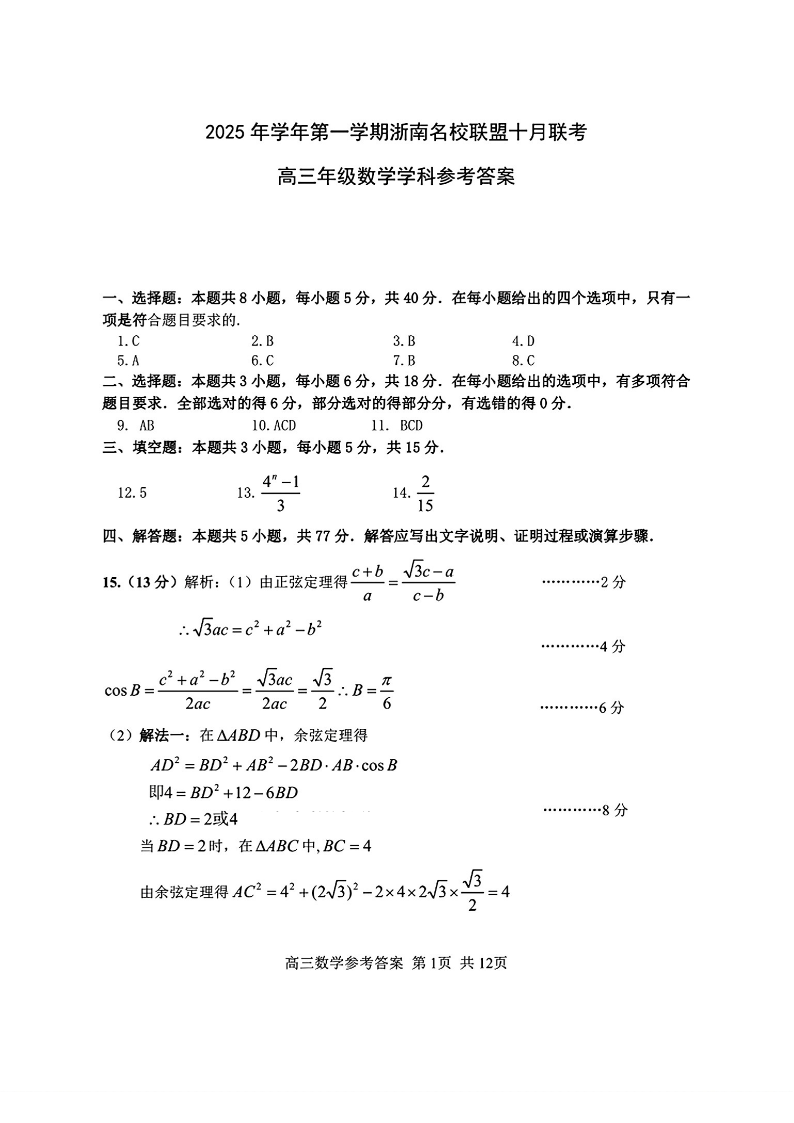 26届浙南名校联盟国庆返校考 数学答案.pdf