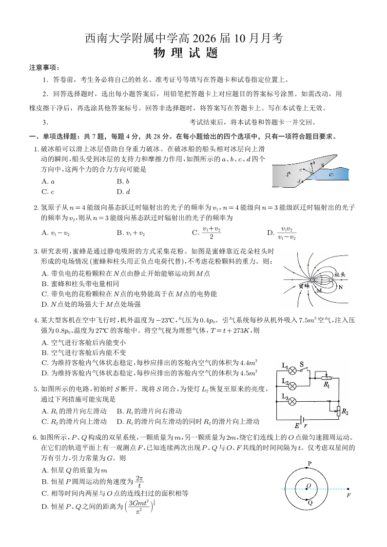 西南大学附属中学高2026届高三10月月考 物理.pdf