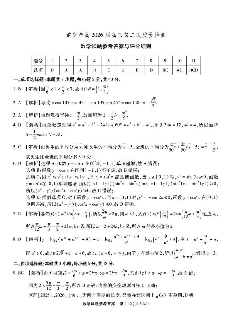 南开中学高2026届高三第二次质量检测 数学答案.pdf