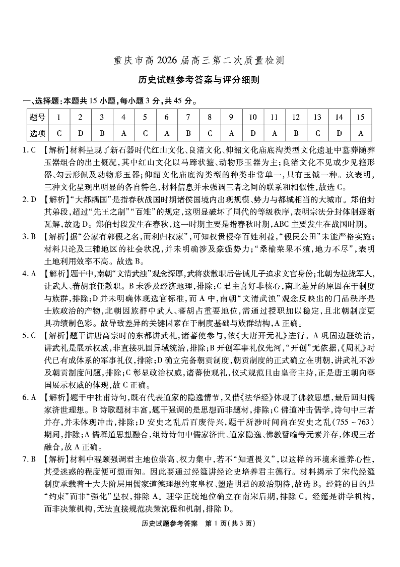南开中学高2026届高三第二次质量检测 历史答案.pdf