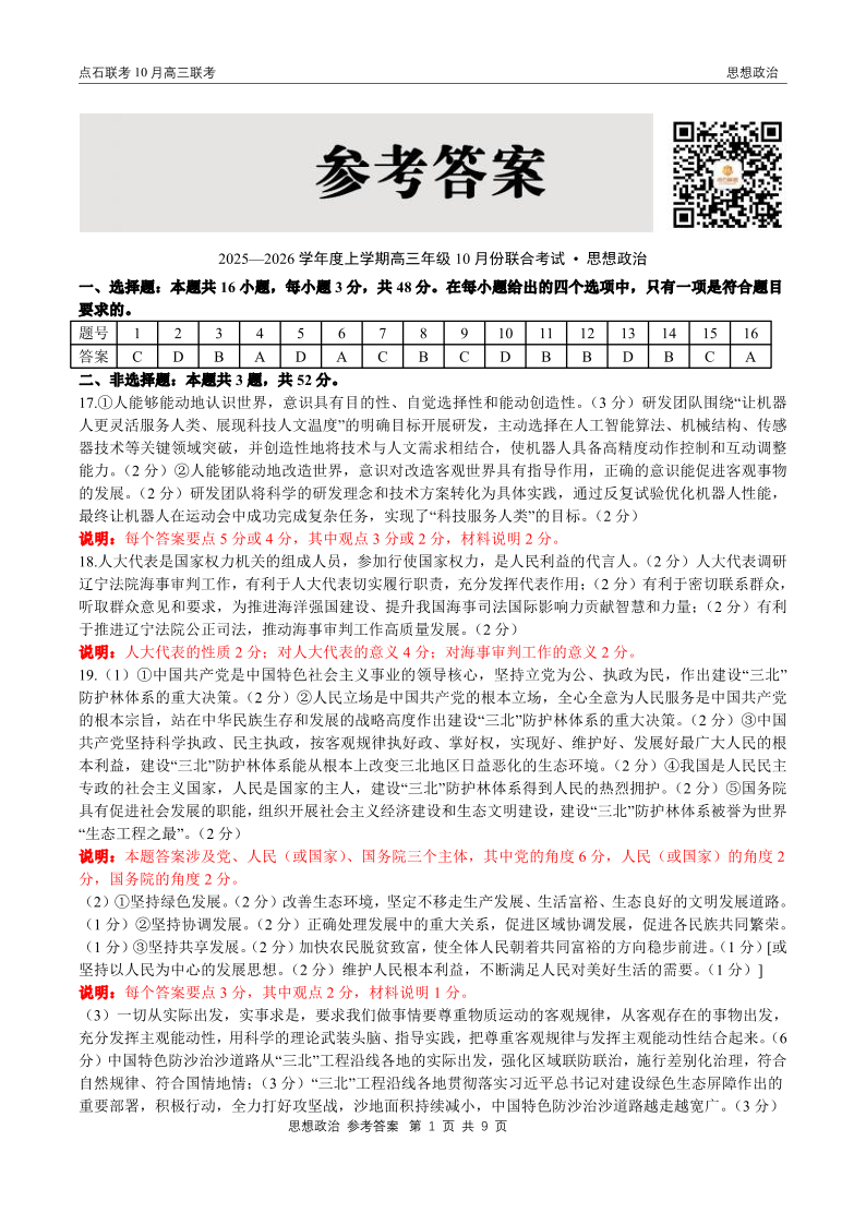 点石联考2025-2026学年度上学期高三年级10月份联合考试 政治答案.pdf