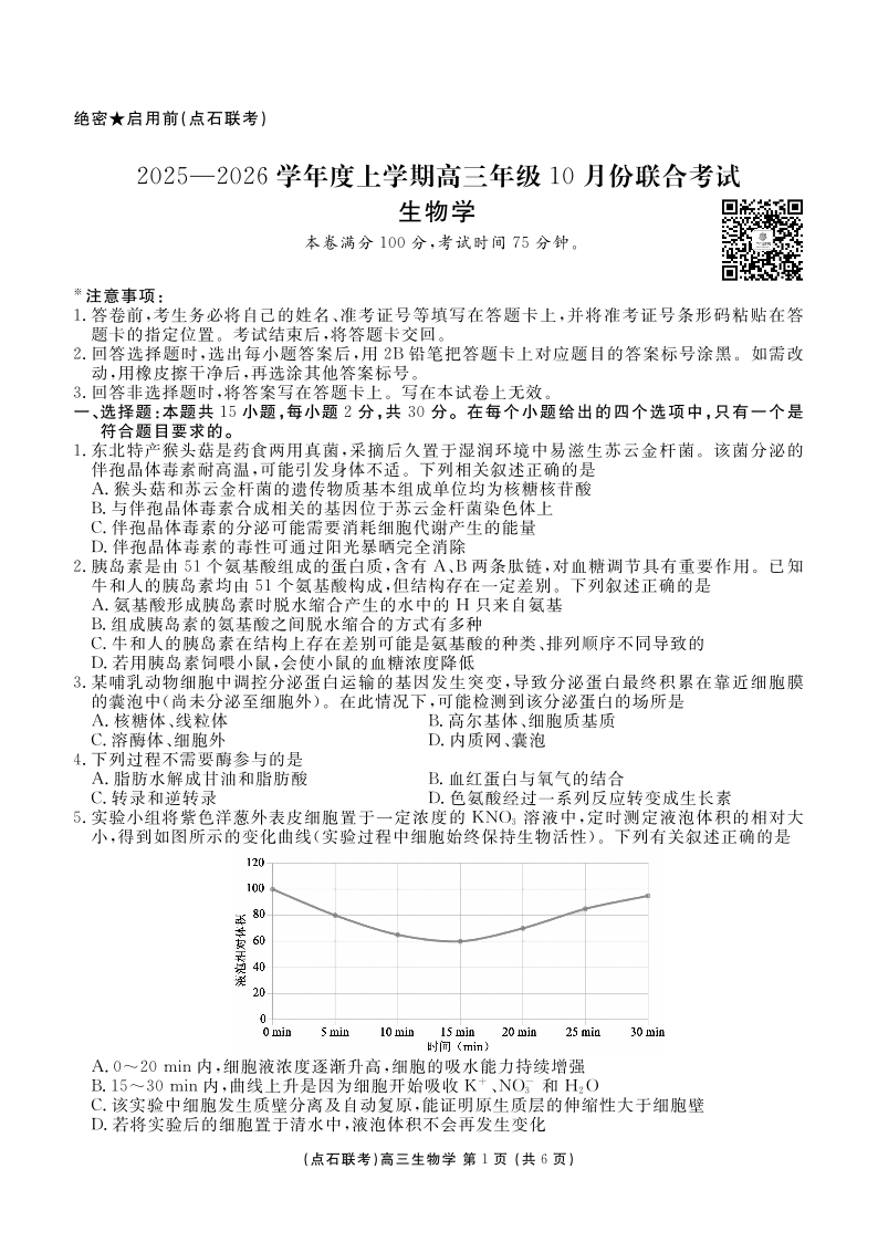 点石联考2025-2026学年度上学期高三年级10月份联合考试 生物.pdf