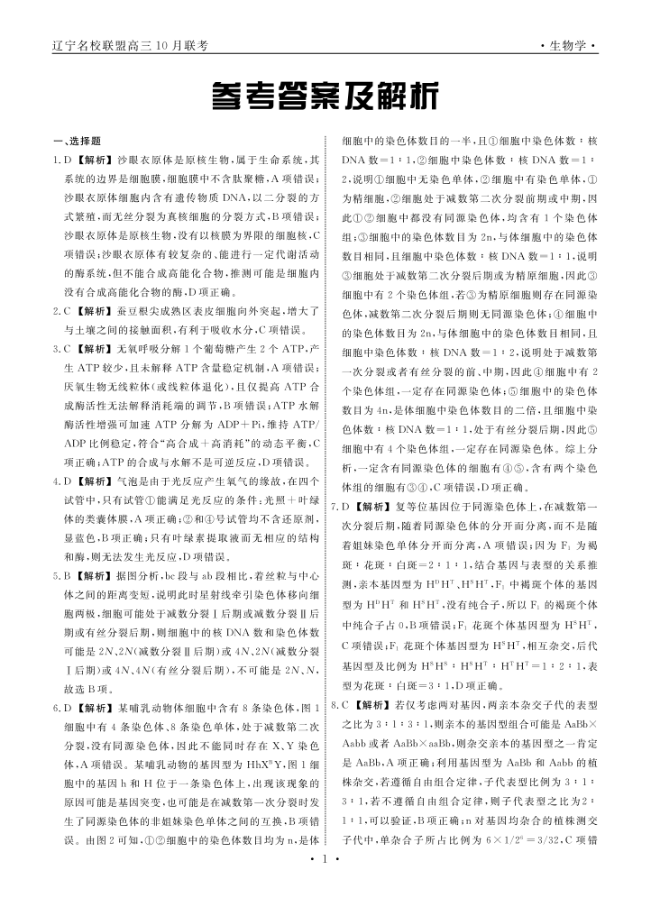 辽宁省名校联盟2025年高三10月份联合考试 生物答案.pdf