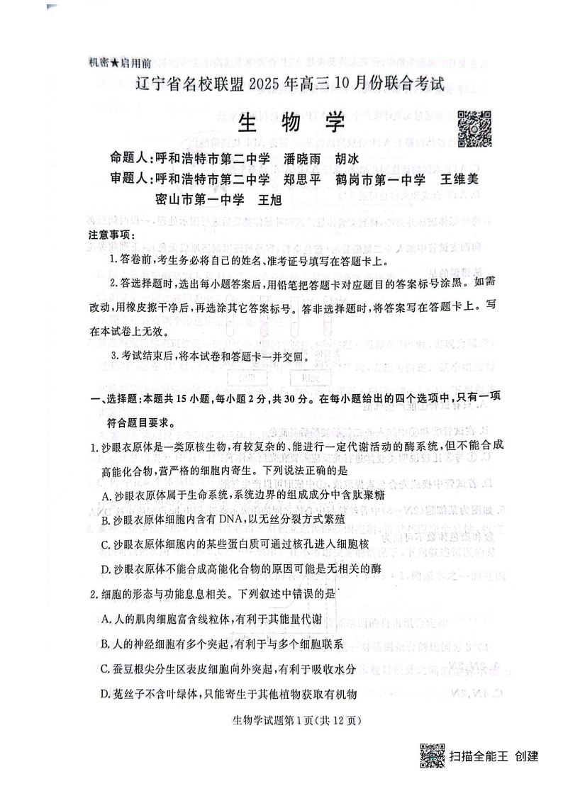 辽宁省名校联盟2025年高三10月份联合考试 生物.pdf