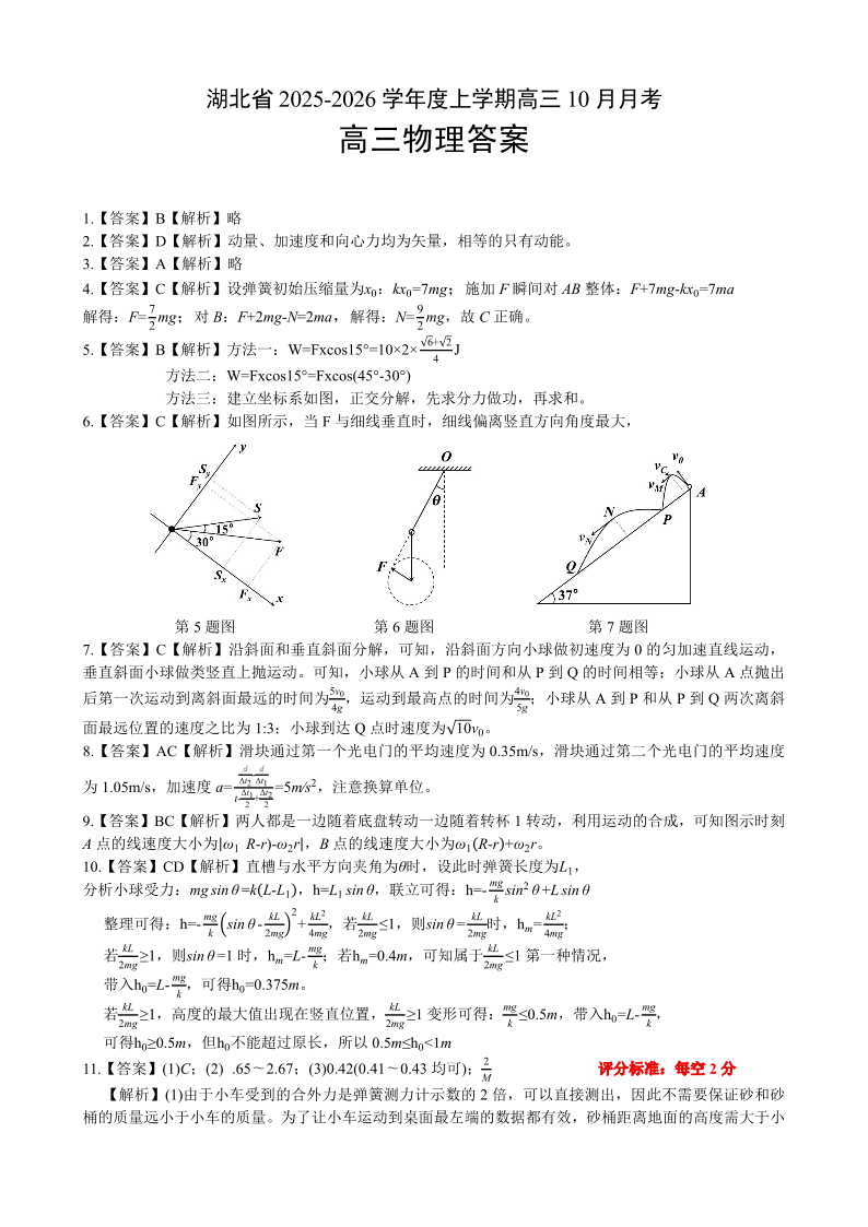 湖北省“新八校”协作体2025-2026学年度上学期高三10月月考 物理答案.pdf