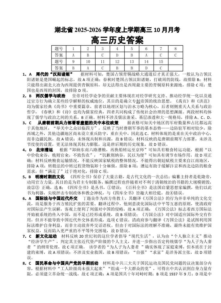 湖北省“新八校”协作体2025-2026学年度上学期高三10月月考 历史答案.pdf