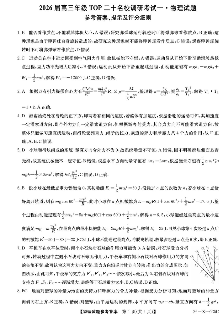 河南省2026届高三年级TOP二十名校调研考试一 物理答案.pdf