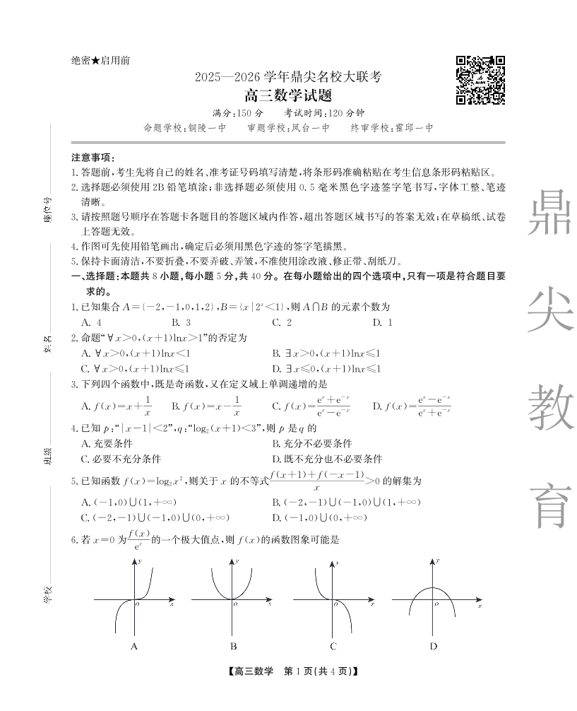 2025-2026学年鼎尖名校大联考 数学.pdf