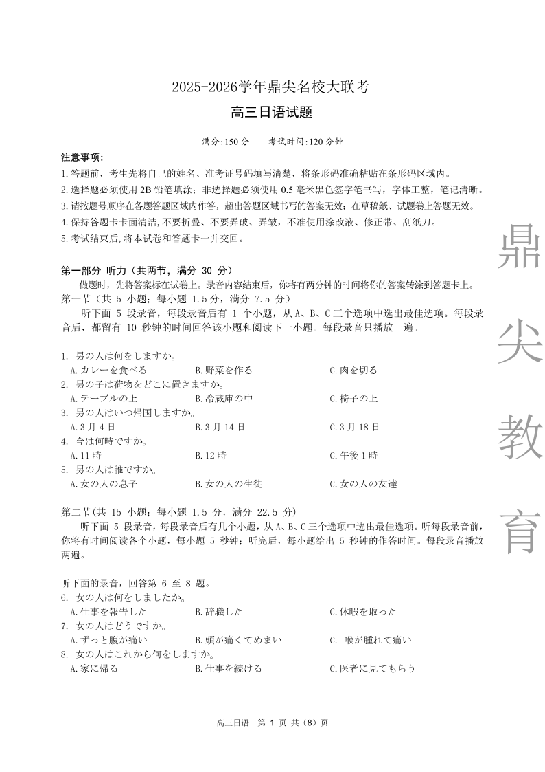 2025-2026学年鼎尖名校大联考 日语.pdf