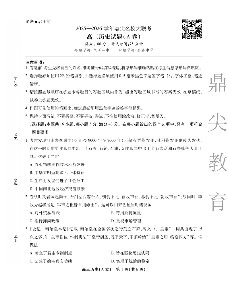 2025-2026学年鼎尖名校大联考 历史(A).pdf
