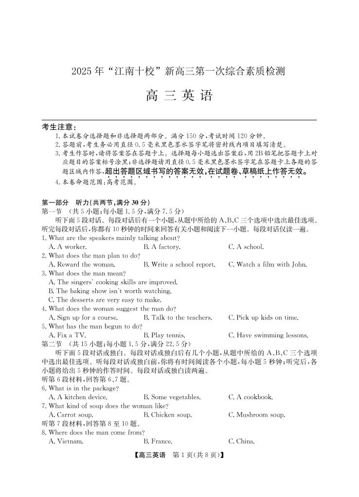 2025年“江南十校”新高三第一次综合素质检测 英语.pdf