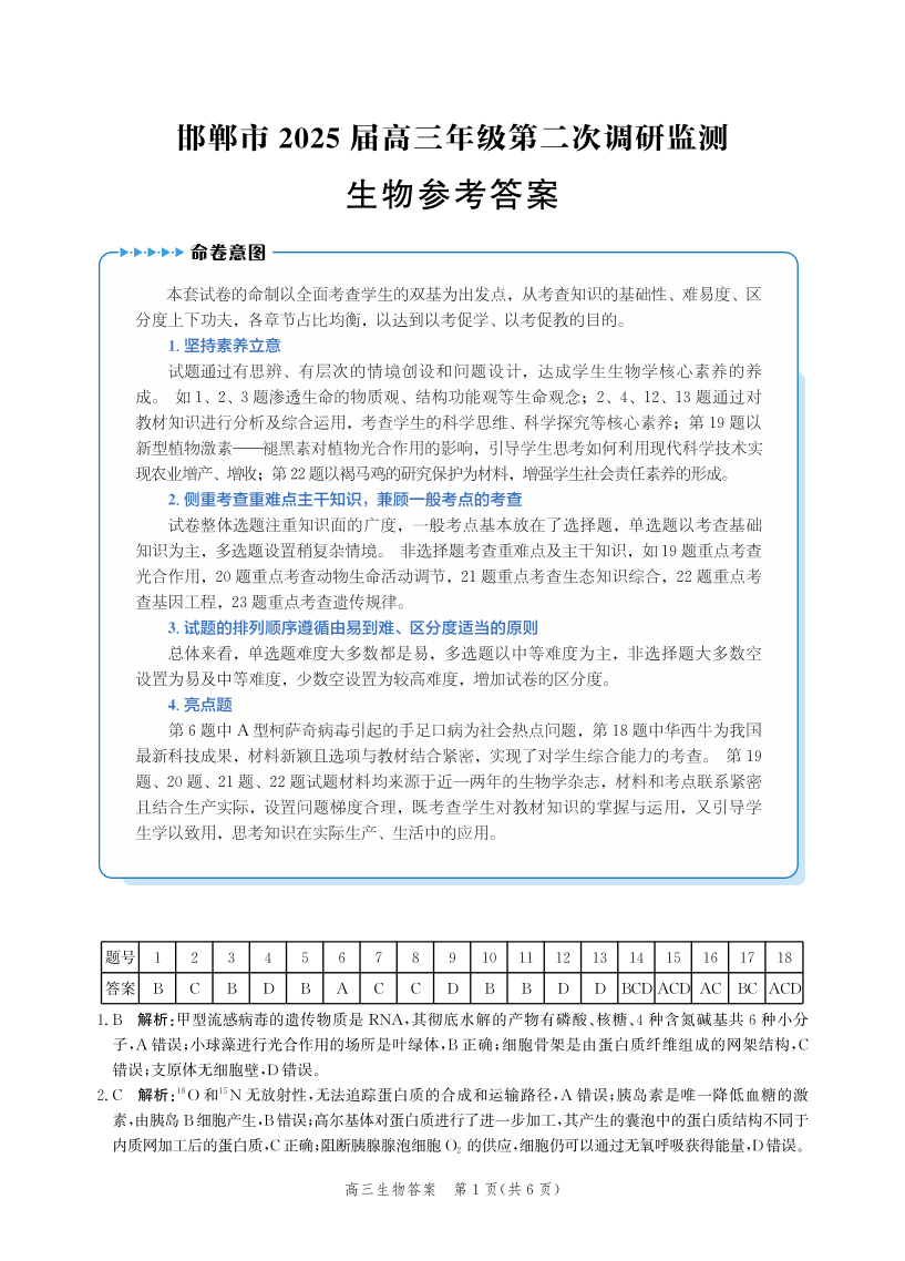 河北省邯郸市2025届高三年级第二次调研监测 生物答案.pdf