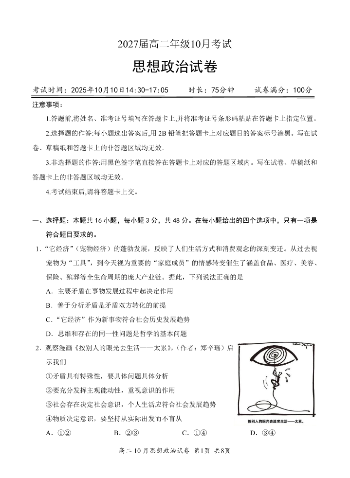 湖北省云学联盟2027届高二年级10月考试 政治.pdf