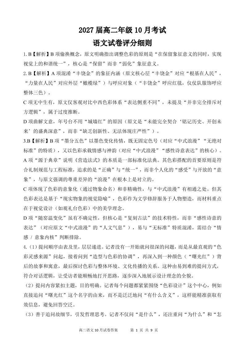 湖北省云学联盟2027届高二年级10月考试 语文答案.pdf