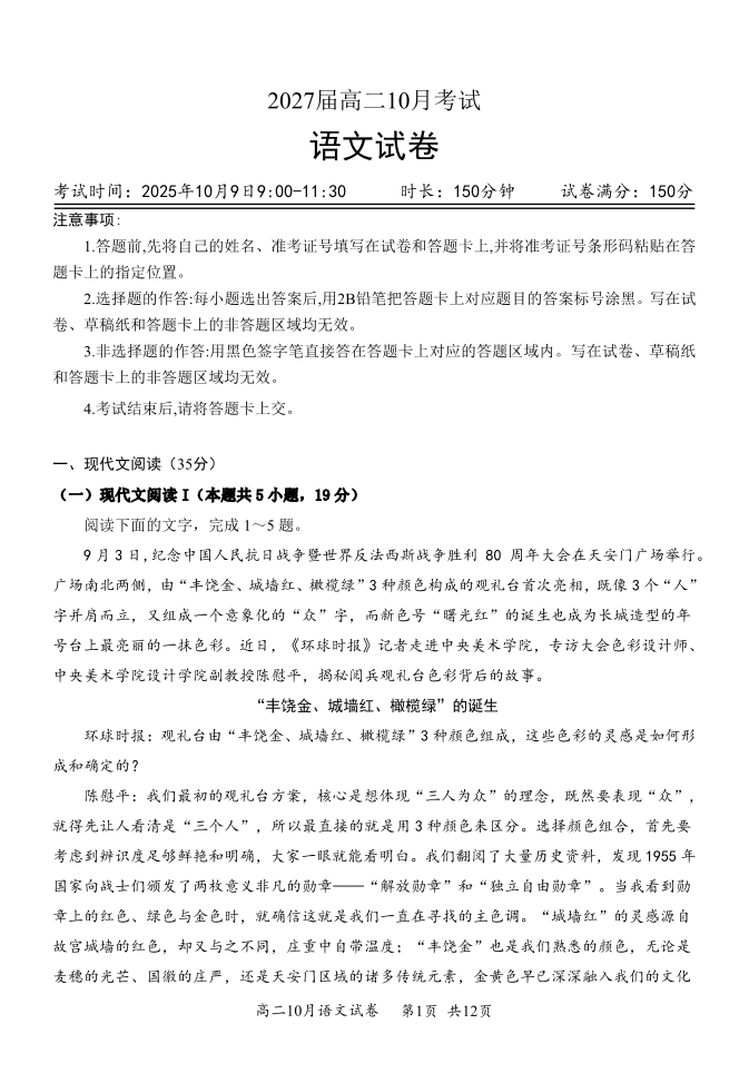 湖北省云学联盟2027届高二年级10月考试 语文.pdf