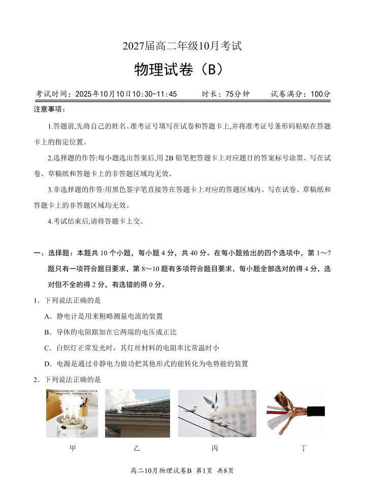 湖北省云学联盟2027届高二年级10月考试 物理(B卷).pdf
