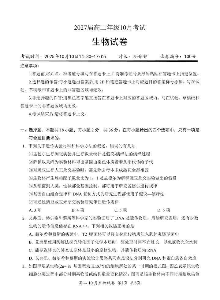 湖北省云学联盟2027届高二年级10月考试 生物.pdf