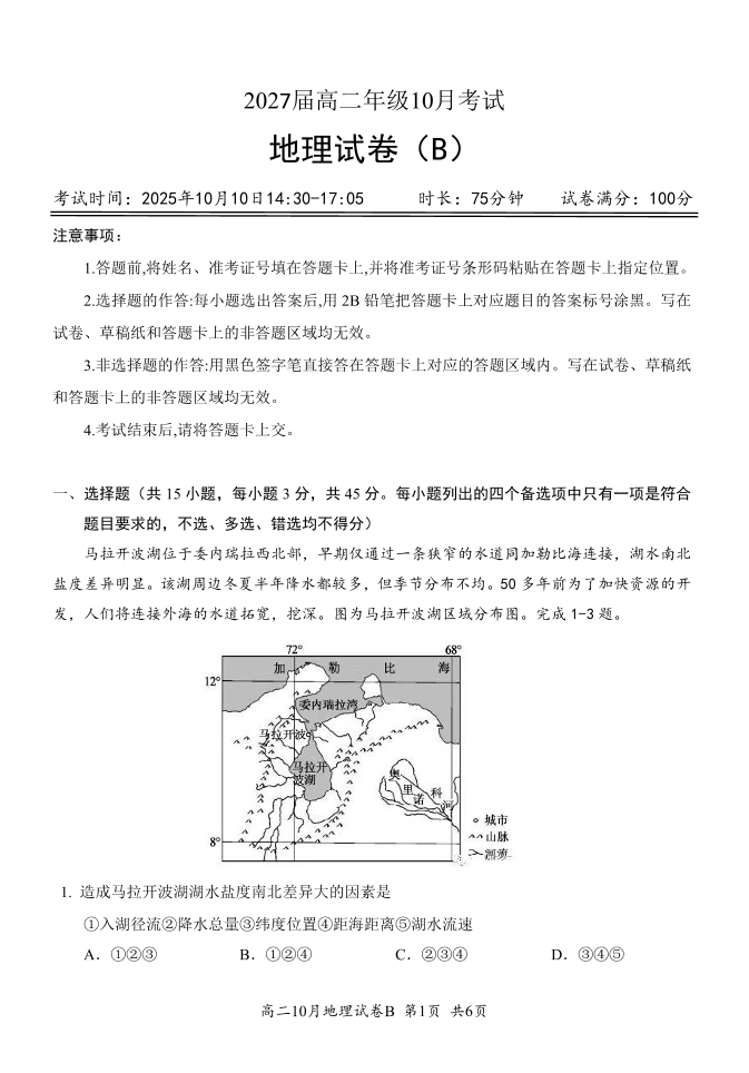 湖北省云学联盟2027届高二年级10月考试 地理(B).pdf