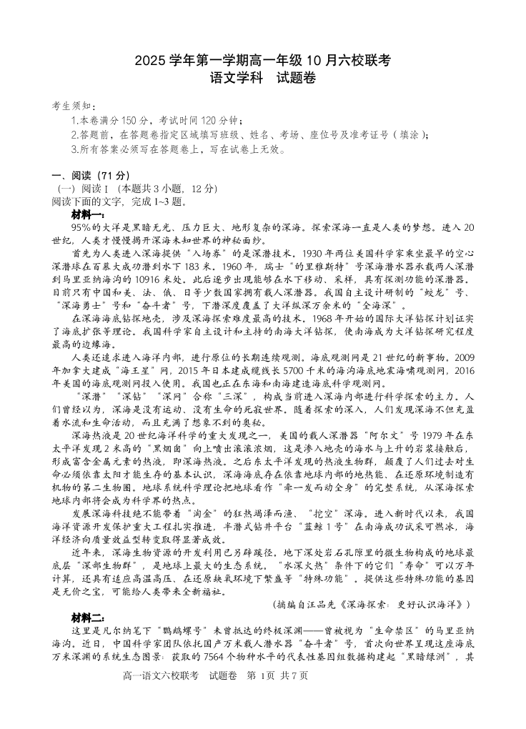 2025学年第一学期高一年级10月六校联考 语文.pdf