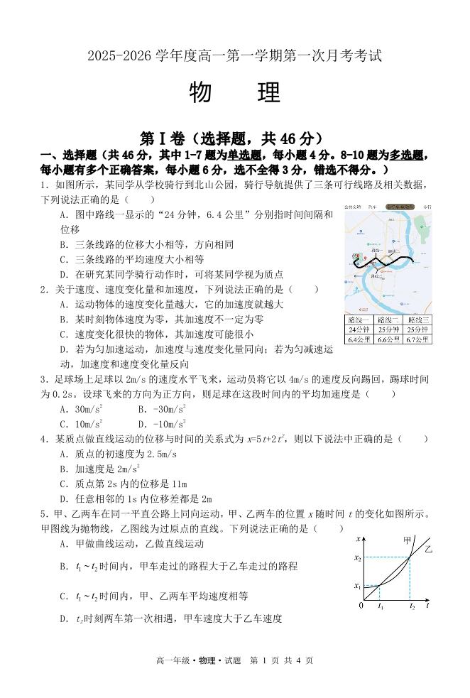 黑龙江省牡丹江市第二高级中学2025-2026学年高一上学期9月月考 物理.pdf