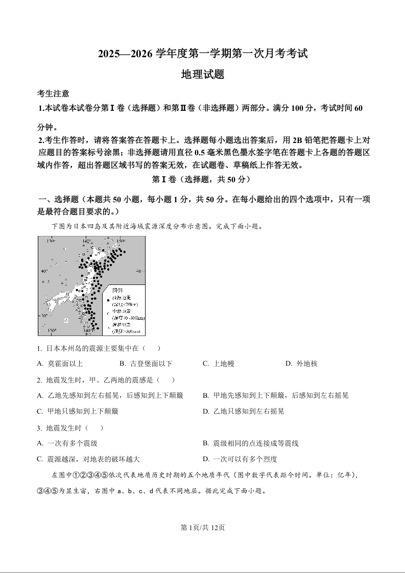 黑龙江省牡丹江市第二高级中学2025-2026学年高一上学期9月月考 地理.docx