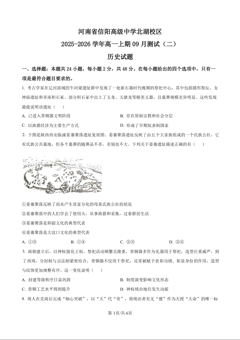 河南省信阳市信阳高级中学2025-2026学年高一上学期9月测试(二)历史.docx