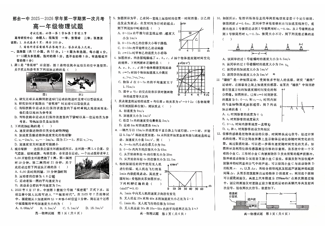 河北省邢台市第一中学2025-2026学年高一上学期9月月考 物理.pdf