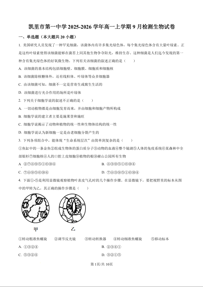 贵州省凯里市第一中学2025-2026学年高一上学期9月检测 生物.docx