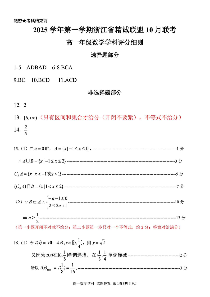 2025学年第一学期浙江省精诚联盟10月联考 数学答案.pdf