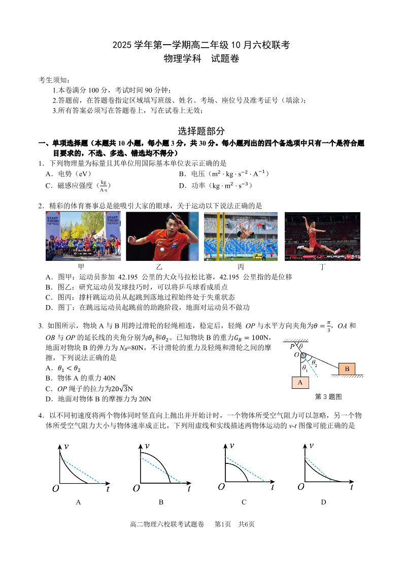 2025学年第一学期高二年级10月六校联考 物理.pdf